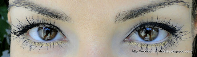 Maskara ma za zadanie pogrubiać rzęsy i tutaj jednak nie do końca się z tym zgodzę. Dobrze je podkreśla i lekko wydłuża, widać również lekkie zwiększenie objętości. Efekt jaki daje określiłabym jako dzienny. Jak już wiecie moje rzęsy są wspomagane odżywką więc na tych bardziej naturalnych tusz na pewno inaczej będzie się prezentował.
